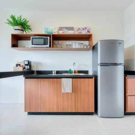 Os hóspedes podem desfrutar da conveniência de cozinha equipada com refrigerador e artigos de vidro para necessidades de auto-atendimento. O Great Location Apartment With Rooftop Pool / Gym está a cerca de 600 metros da paragem R1-Rehoyada - Plaza Kukulcan.